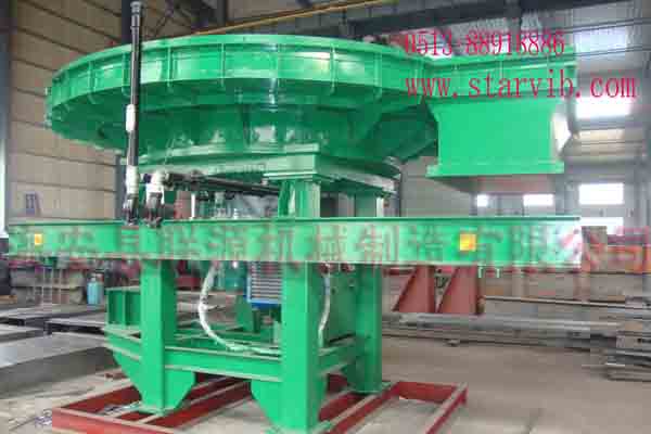 PDX系列定量圓盤給料機主要有傳動機構(減速機、電機、回轉支承、小齒輪、聯軸器等)、短管、圓盤底座、底架、扇形門組裝(調節出料口大小)、落料導板組裝(糾正物料流向)、刮刀組裝(將物料轉卸到下一設備上)、管道組裝起重裝置(起吊設備用)等部件組成。